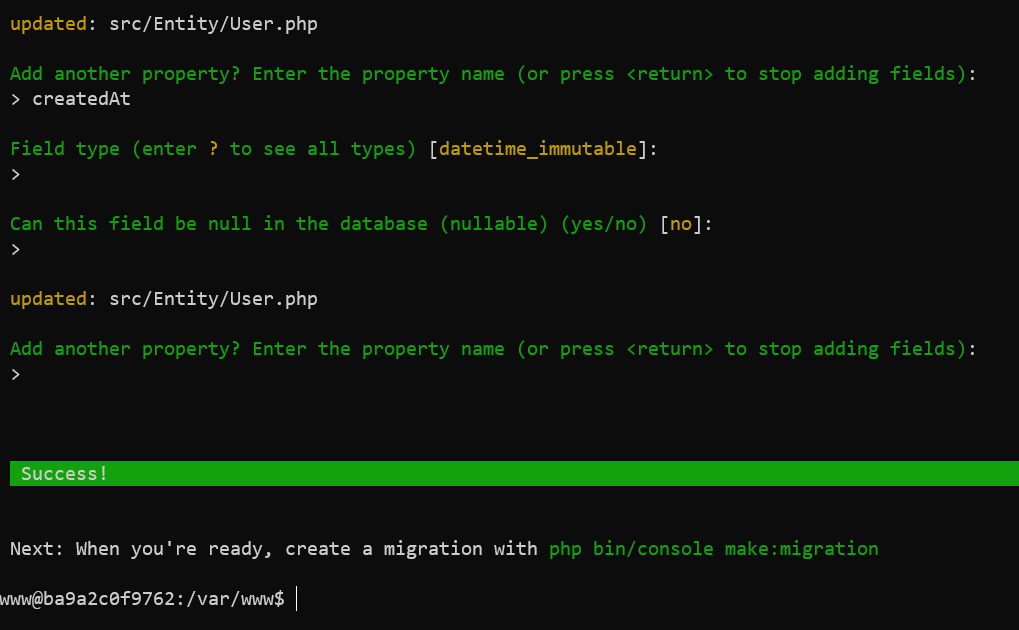 php bin/console make:migration